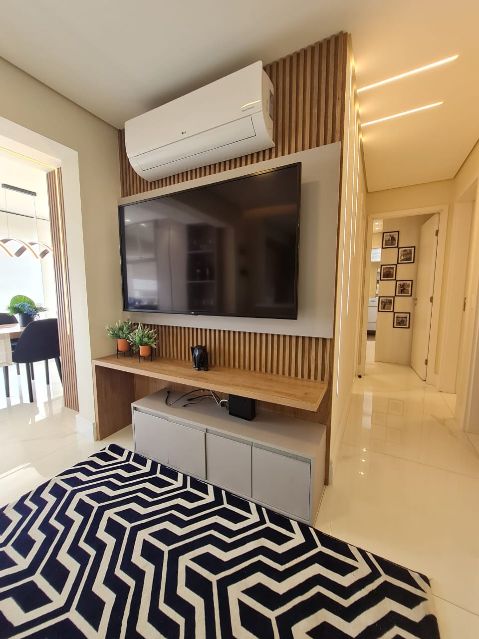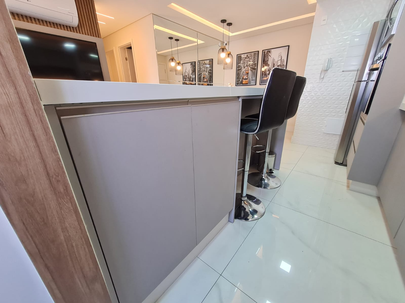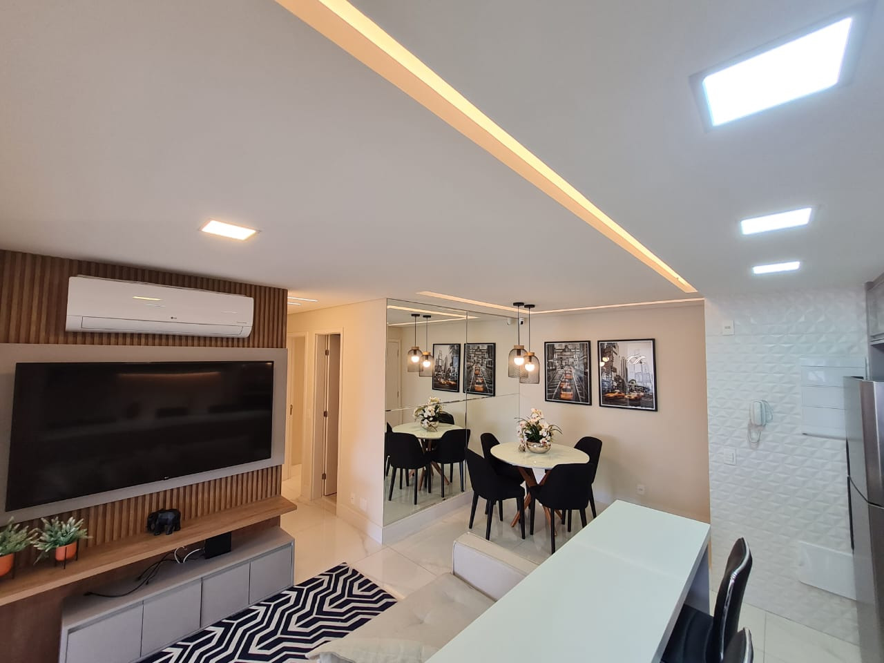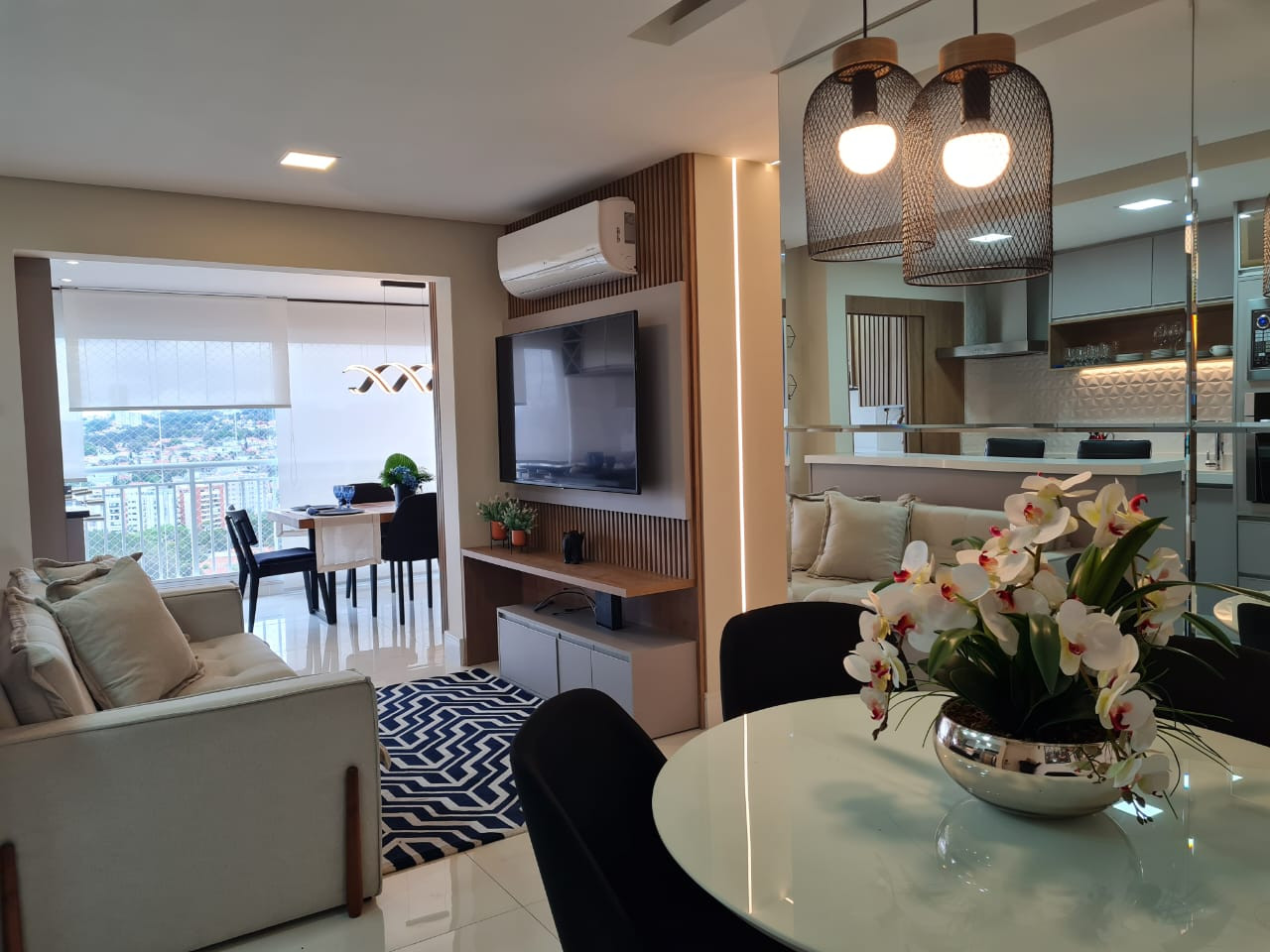 Apartamento novo, totalmente mobiliado, com três quartos, sendo um deles suíte. Duas Smartvs, todos os quartos e sala com ar condicionado. Geladeira, microondas, cooktop, coifa, mesas, cadeiras, lustreis, móveis planejados, colchões Castor, quadros, etc. Tudo em porcelanato, sacada com vidros e telas. Churrasqueira sem uso. Tudo completo. Duas vagas de garagem. Condomínio muito arborizado, com duas piscinas, uma delas coberta e área de lazer completa. Condomínio:.R$1.000,00 IPTU:.R$282,66